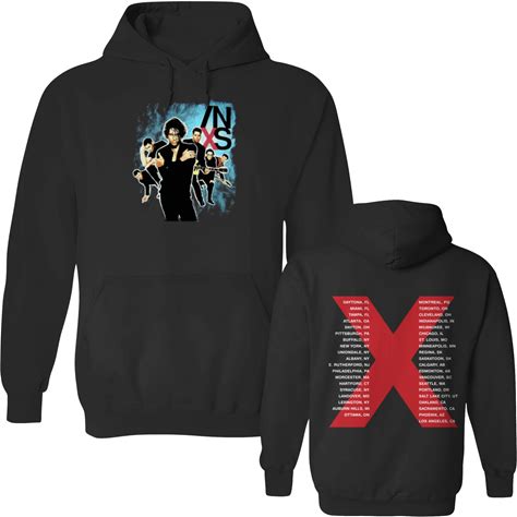 INXS Concert Tour Double-Sided Hoodie - Michael Hutchence Tribute Unisex Black Activewear Sweatshirt
