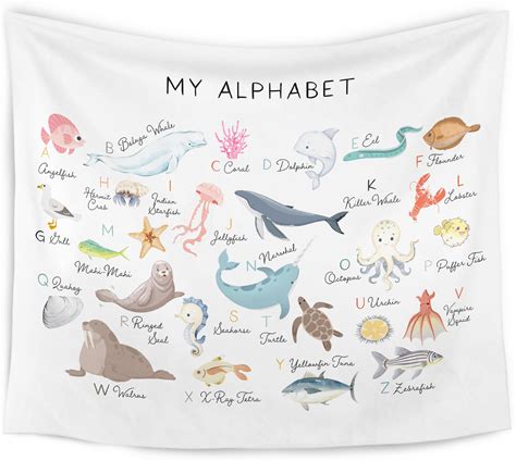 WARDOS Ocean Nursery Alphabet Tapestry, Sea Animals Kids Tapestry Wall Hanging, ABC Alphabet Educational Wall Blanket Decor For Classroom Toddler Kids