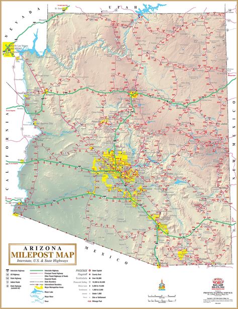 Wide World Of Maps, Inc. Arizona Milepost Map: Interstate, U.S., & State Highways Gloss Laminated