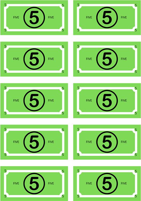 Printable 5 Dollar Play Money