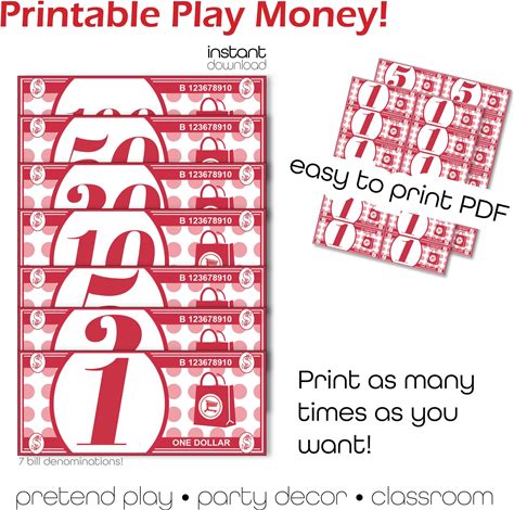 Play Money, Kids Pretend Play, Pretend Money, Toy Money, Printable Money For Kids To Play | INSTANT DOWNLOAD