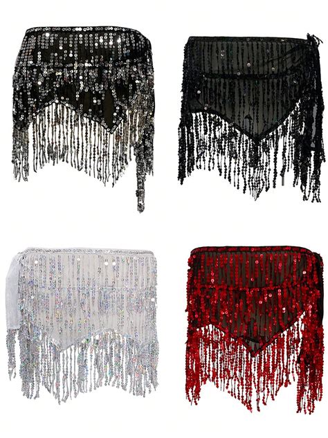 Belly Dance Costume Triangle Hip Scarf Sequin Fringe Tassels Belt Hand Crochet Belly Dance Hip Scarf