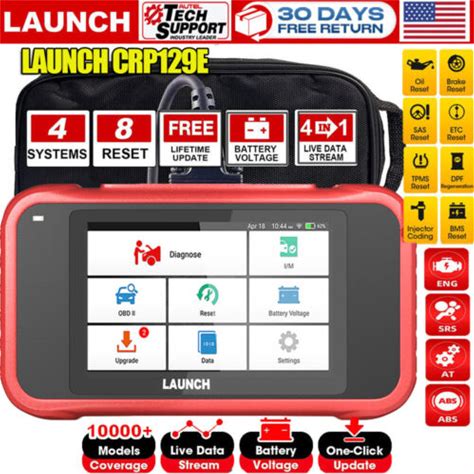 Launch Crp129e Automotive Diagnostic Tool With 4 Systems Diagnostic, 8 Reset Services, Black 1 Piece